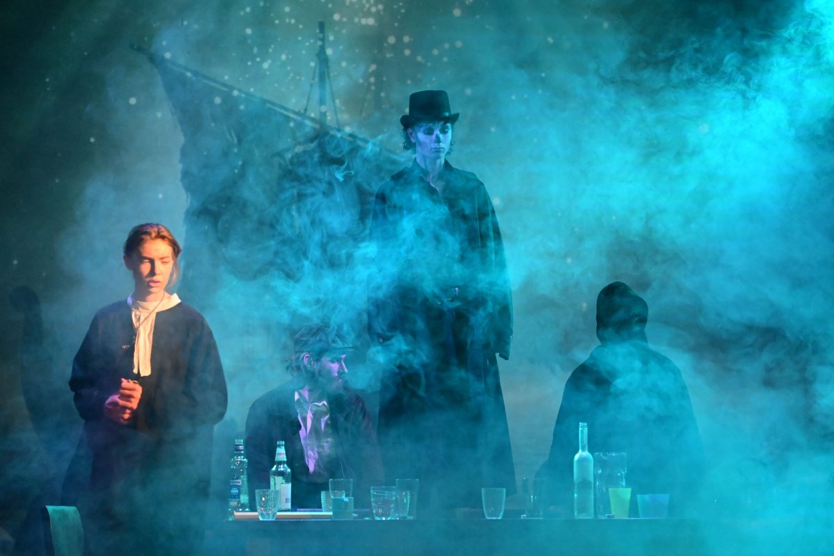 Das Hochpolitische des Nordirland-Konflikts kommt in der Aufführung erst nach und nach zum Vorschein und verbirgt sich zu Anfang geschickt hinter einer dynamischen und mitreißenden Familiengeschichte: Ein wilder Haufen von sechs Kindern (Kompliment an alle Darsteller*innen!) feindet sich an und herzt sich gleich darauf wieder, die demente Großtante (Polina Olinska) erzählt in hellen Momenten herzzerreißend von ihrer unerfüllten Liebe und ihr Bruder (Henry Brandes) erinnert salpstickreif unaufhörlich an das stattfindende Erntefest. Und dann ist auch noch die Gans verschwunden…